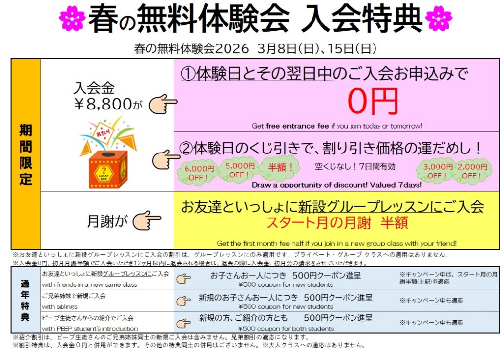 ポール エドワーズ イングリッシュ プログラム。「ポールエドワーズの英会話教室」という意味で、頭文字を取って通称「英会話PEEP(ピープ)」です。英単語「peep」は「ちらっと見る、のぞき見る」という意味があります。PEEPのホームページを「ちらっと見」して、気に入っていただけたら幸いです!(o^^o)
