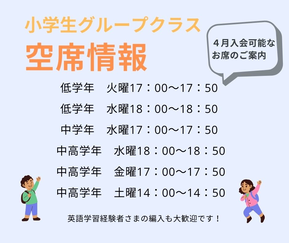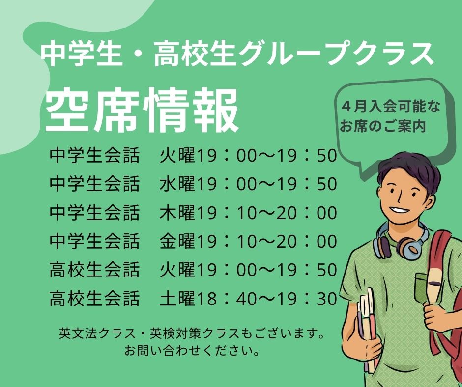 3月28日(土) 中学生会話クラス 無料体験会 18:30~